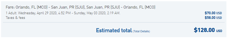 Orlando (MCO) to San Juan (SJU) for $128 round-trip nonstop on JetBlue: