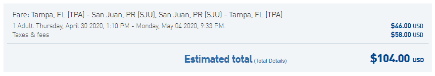 Tampa (TPA) to San Juan (SJU) for $104 round-trip nonstop on JetBlue: