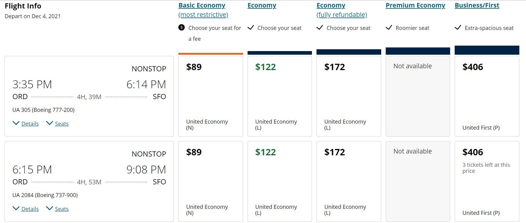 The deal below is for a nonstop Chicago to San Francisco one-way flight on Dec. 4. Basic economy seats start at $89 with United Airlines.