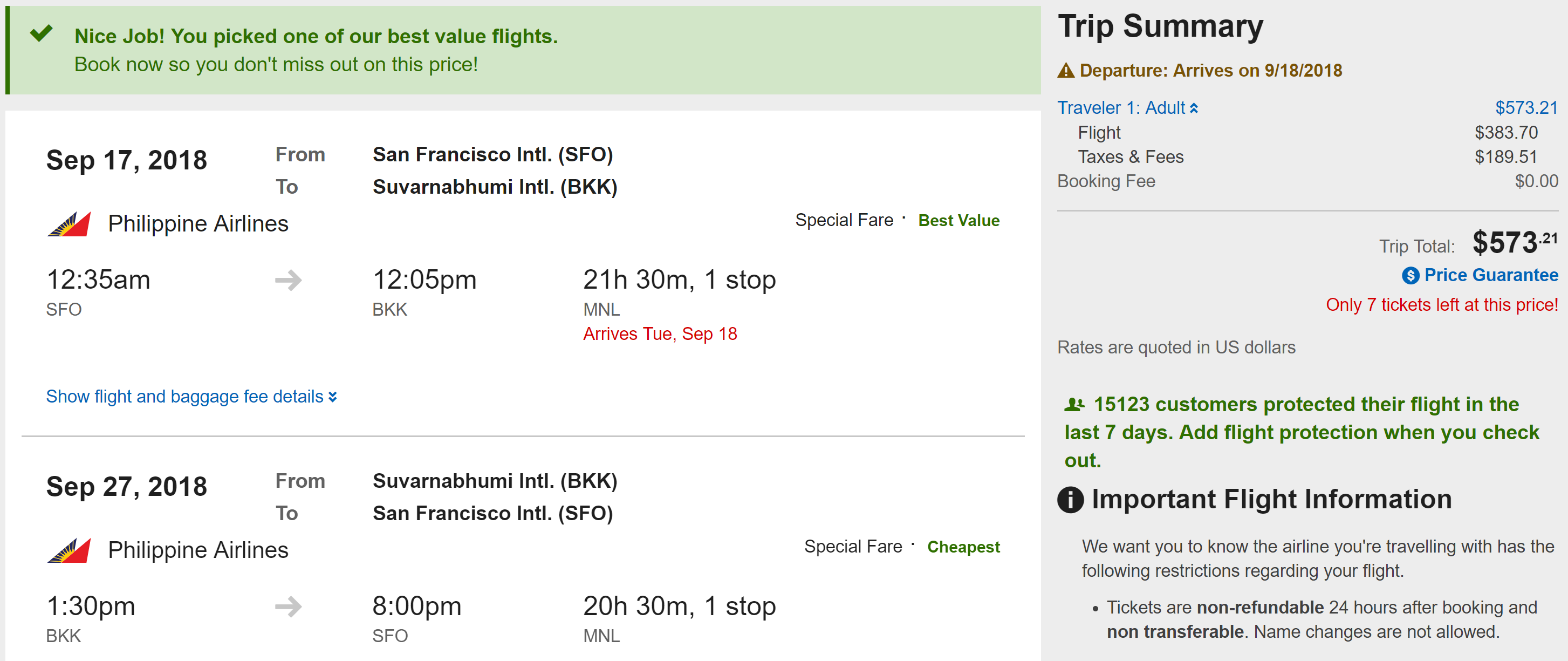 San Francisco (SFO) to Bangkok (BKK) on Philippine Airlines for $573 round-trip: