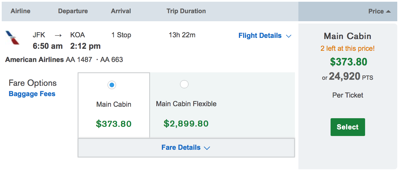 New York (JFK) to Kona (KOA) for $374 round-trip or 24,920 UR points in July via Chase Ultimate Rewards portal: