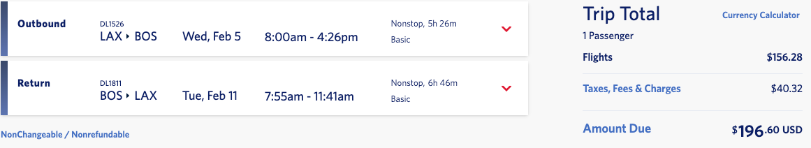 Los Angeles (LAX) to Boston (BOS) on Delta for $197 round-trip:
