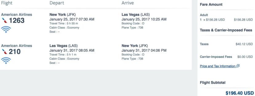New York (JFK) to Las Vegas (LAS) for $196 round-trip in January on American: