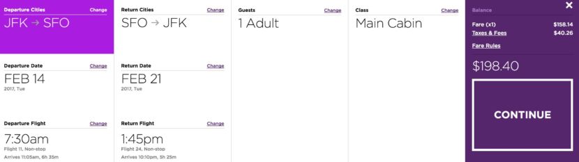 New York (JFK) to San Francisco (SFO) for $198 round-trip in February on Virgin America: