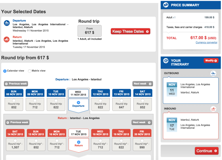 Los Angeles (LAX) to Istanbul (IST) for $617 on Turkish: