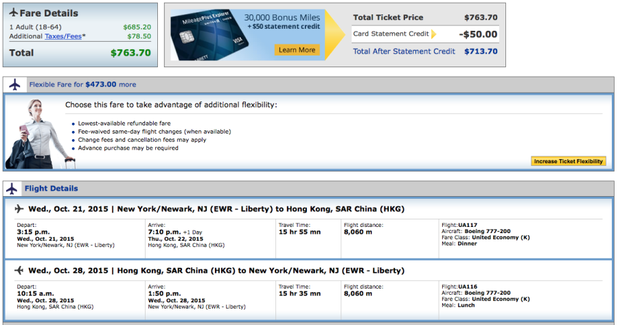 Newark (EWR)-Hong Kong (HKG) on United for $764 (earns 16,120 PQMs):