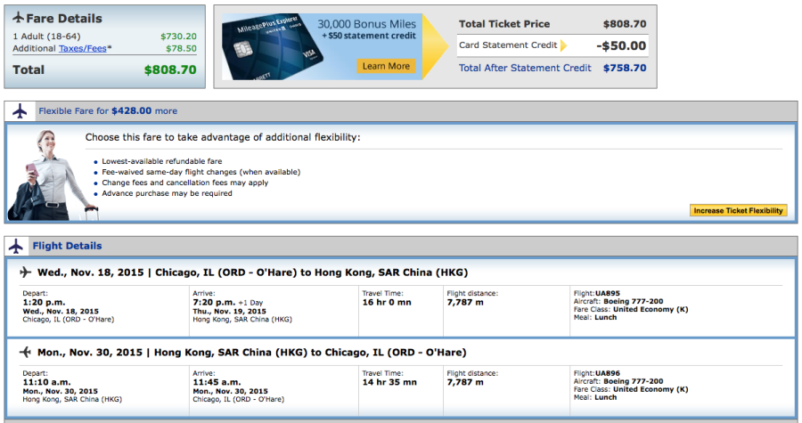 Chicago (ORD)-Hong Kong (HKG) on United for $809.