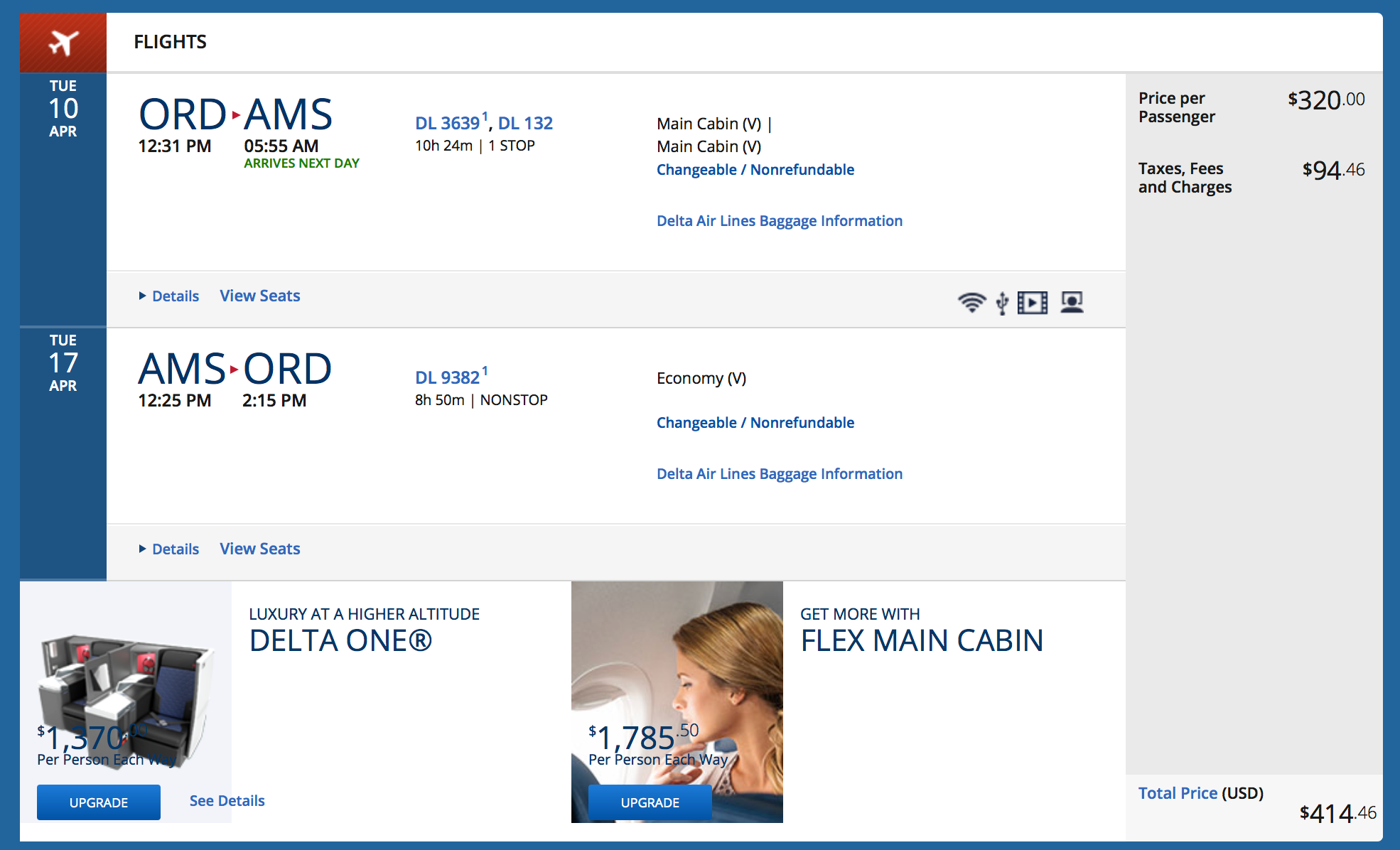 Chicago (ORD) to Amsterdam (AMS) for $415 round-trip on Delta: