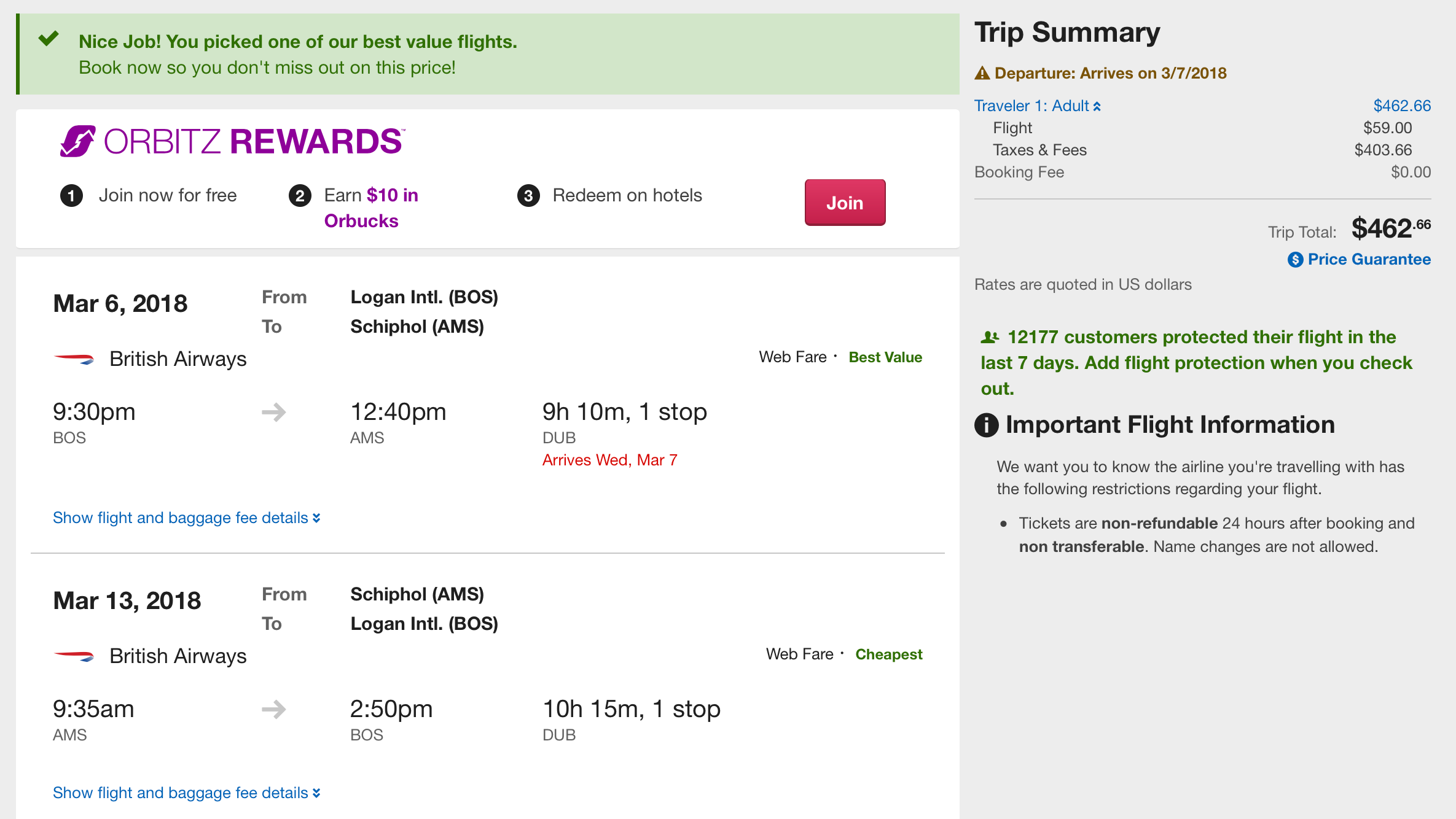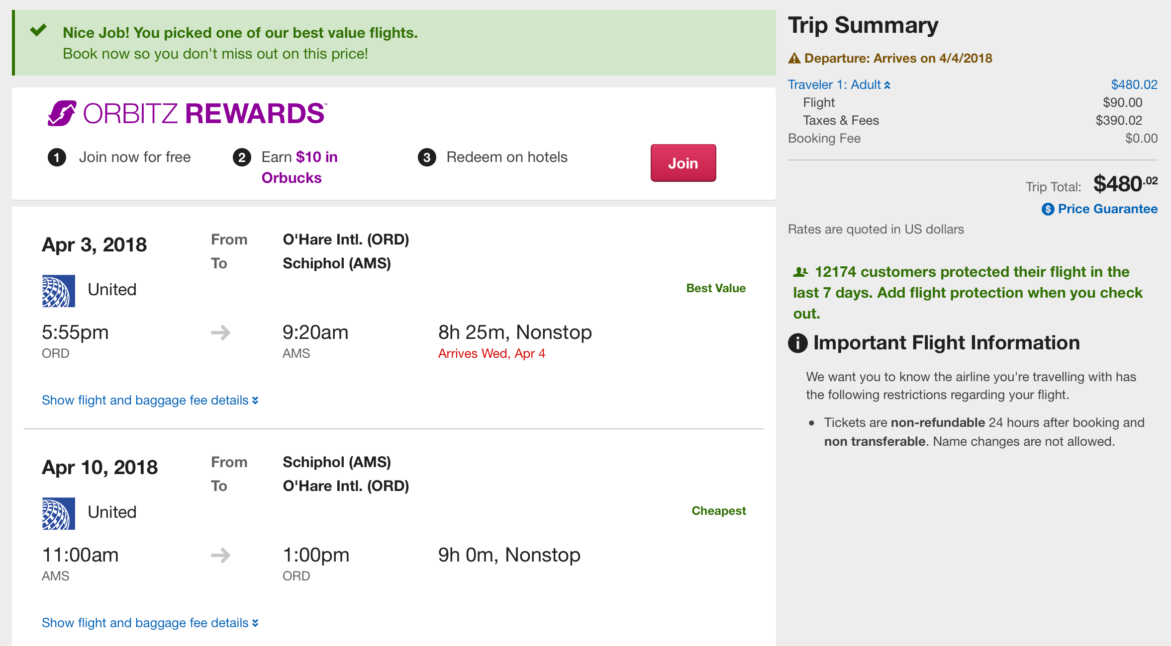 Booking Link: Orbitz, Expedia or with the airline itself