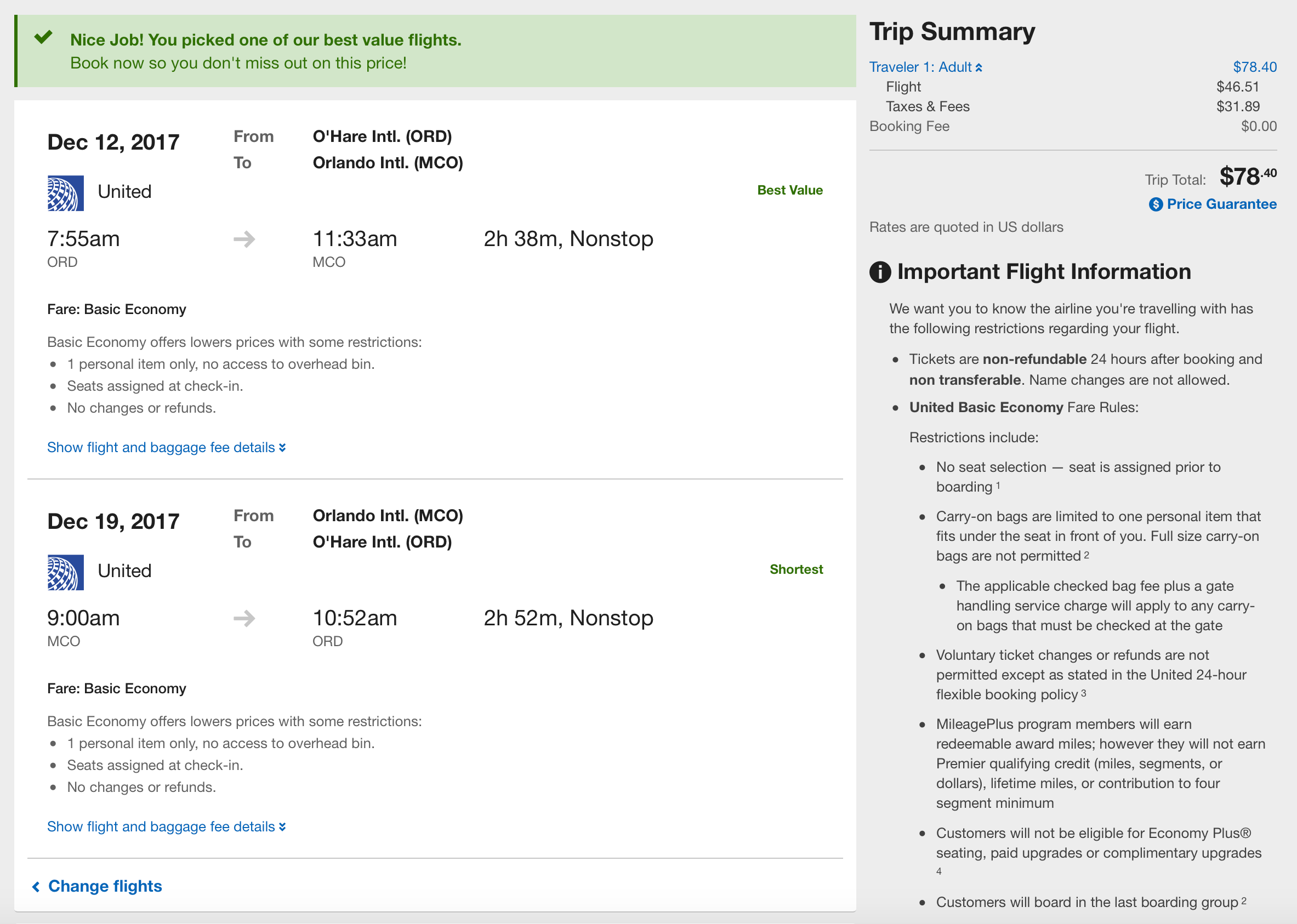 Chicago O'Hare (ORD) to Orlando (MCO) on United for $78 round-trip via Orbitz:
