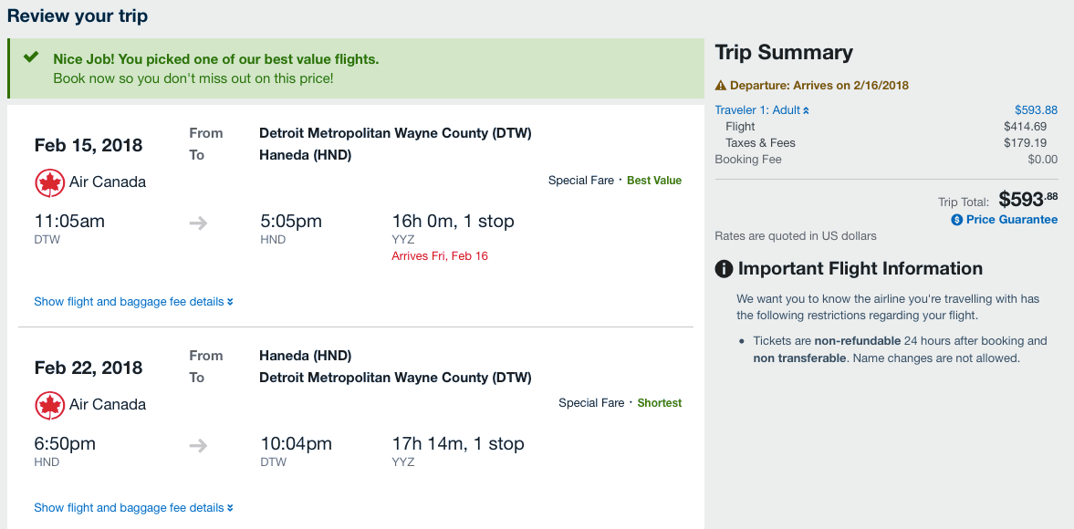 Detroit (DTW) to Tokyo (HND) for $594 round-trip via Orbitz: