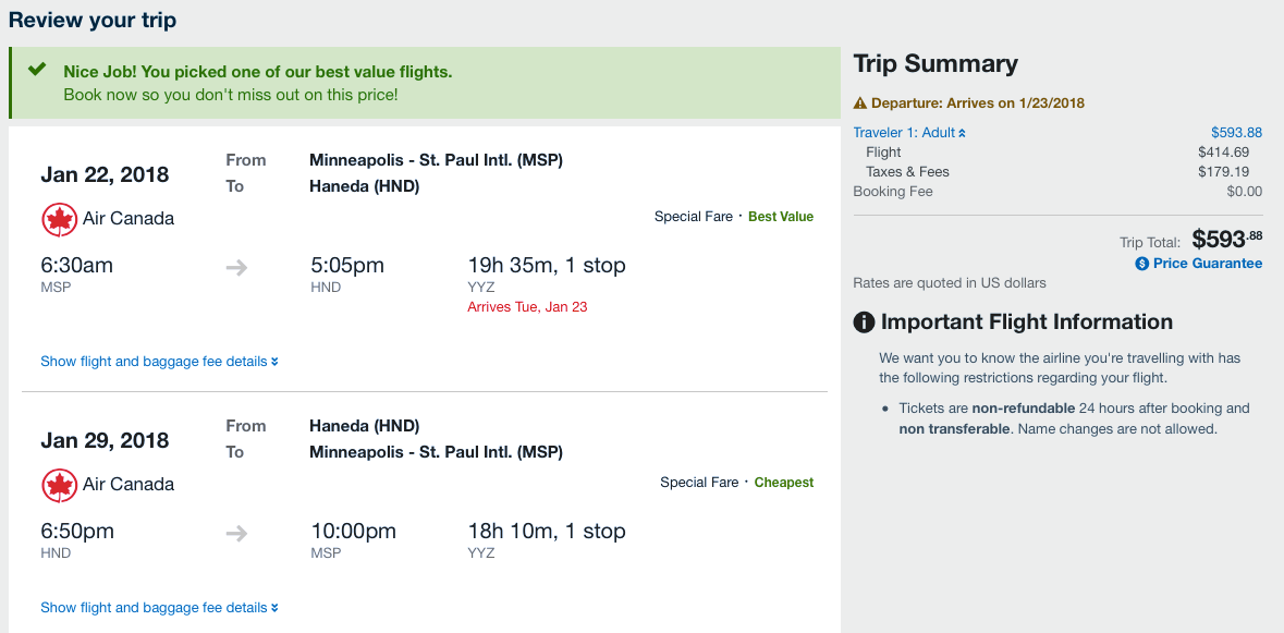 Minneapolis (MSP) to Tokyo (HND) for $594 round-trip via Orbitz: