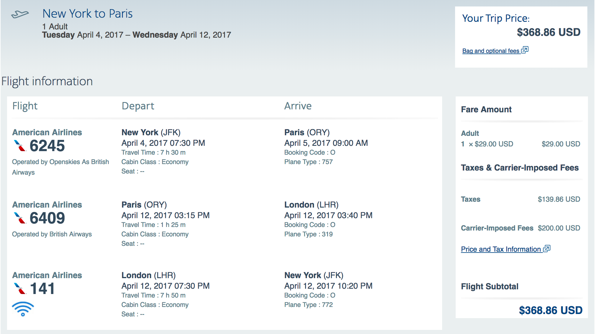 New York (JFK) to Paris (ORY) for $369 round-trip in April: