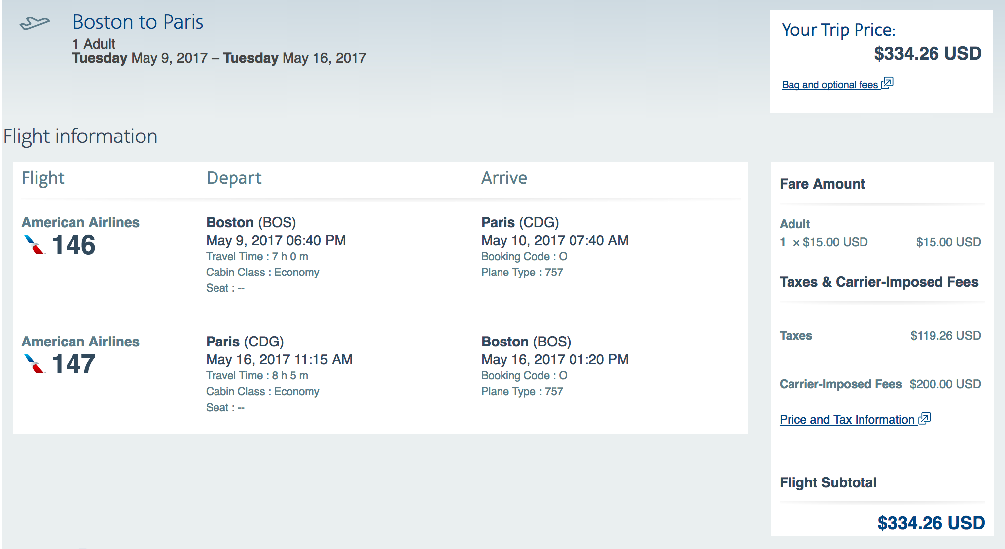 Boston (BOS) to Paris (CDG) for $334 round-trip in May: