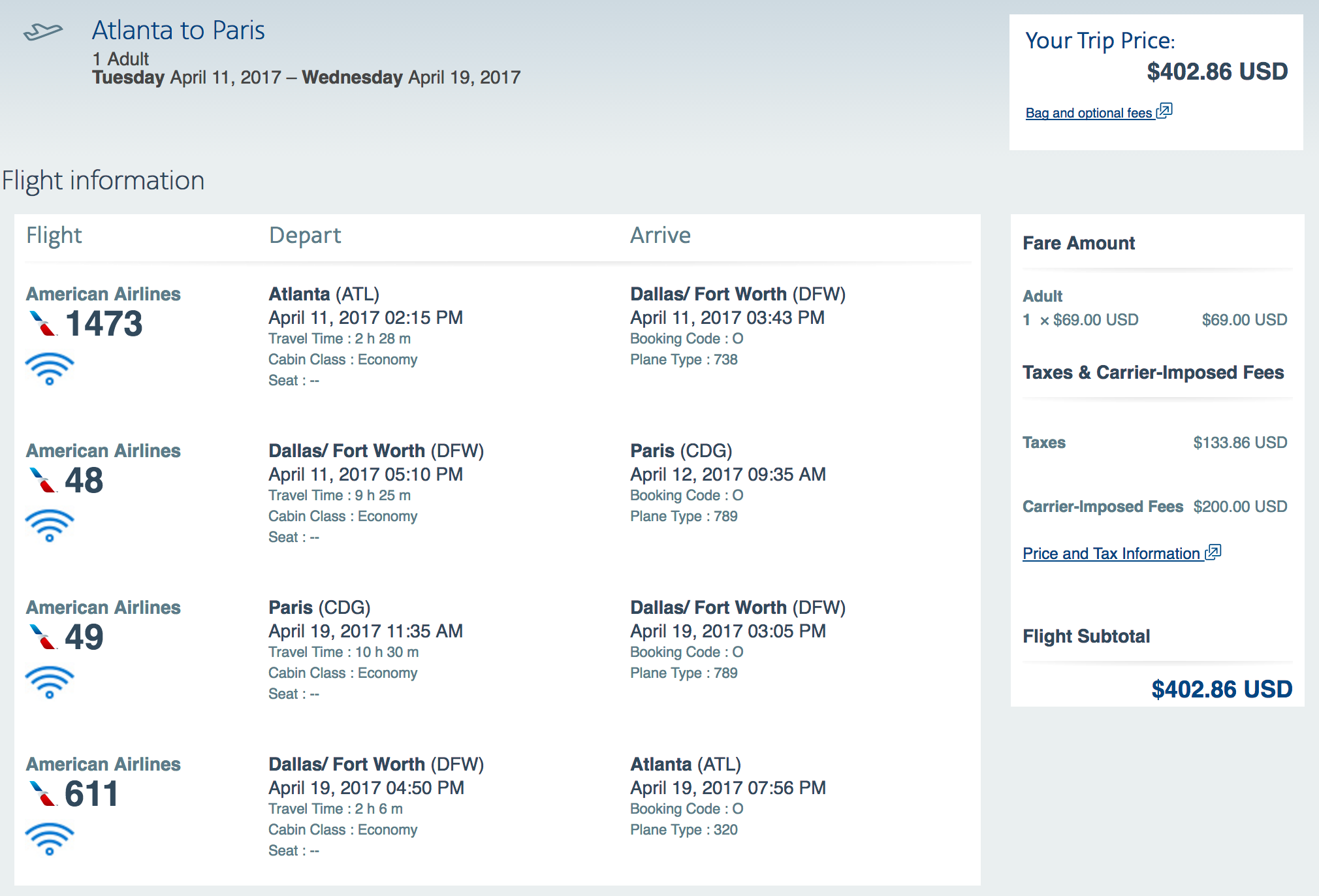 Atlanta (ATL) to Paris (CDG) for $403 round-trip in April: