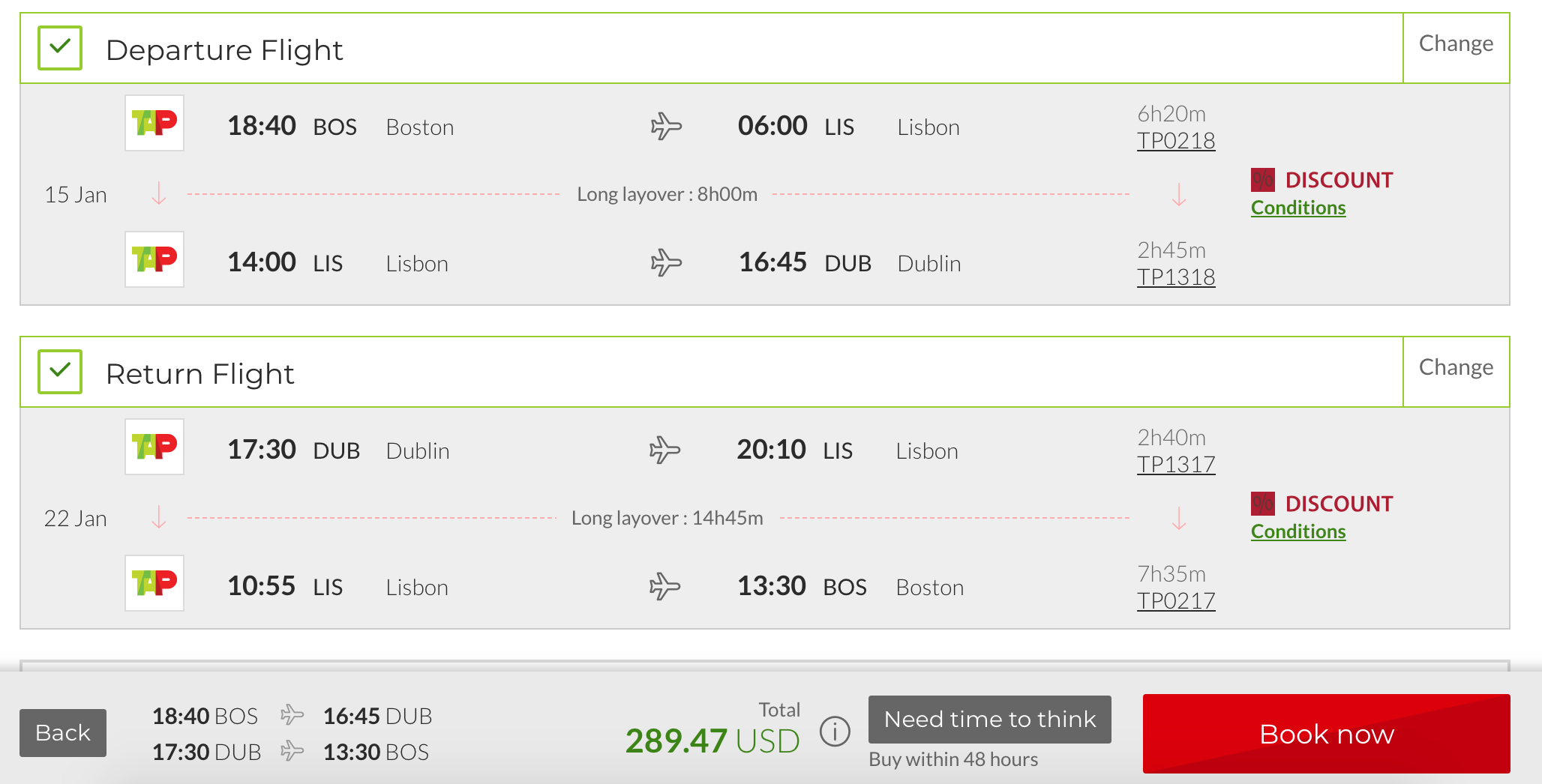 Boston (BOS) to Dublin (DUB) for $290 round-trip via TAP Portugal: