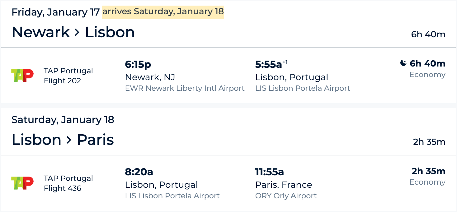 Newark (EWR) to Paris (ORY) for $275 round-trip on TAP Portugal via Priceline: