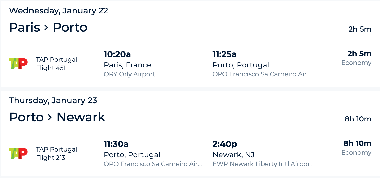 Google Flights Sample Availability for New York to Porto, Portugal for $270 R/T:
