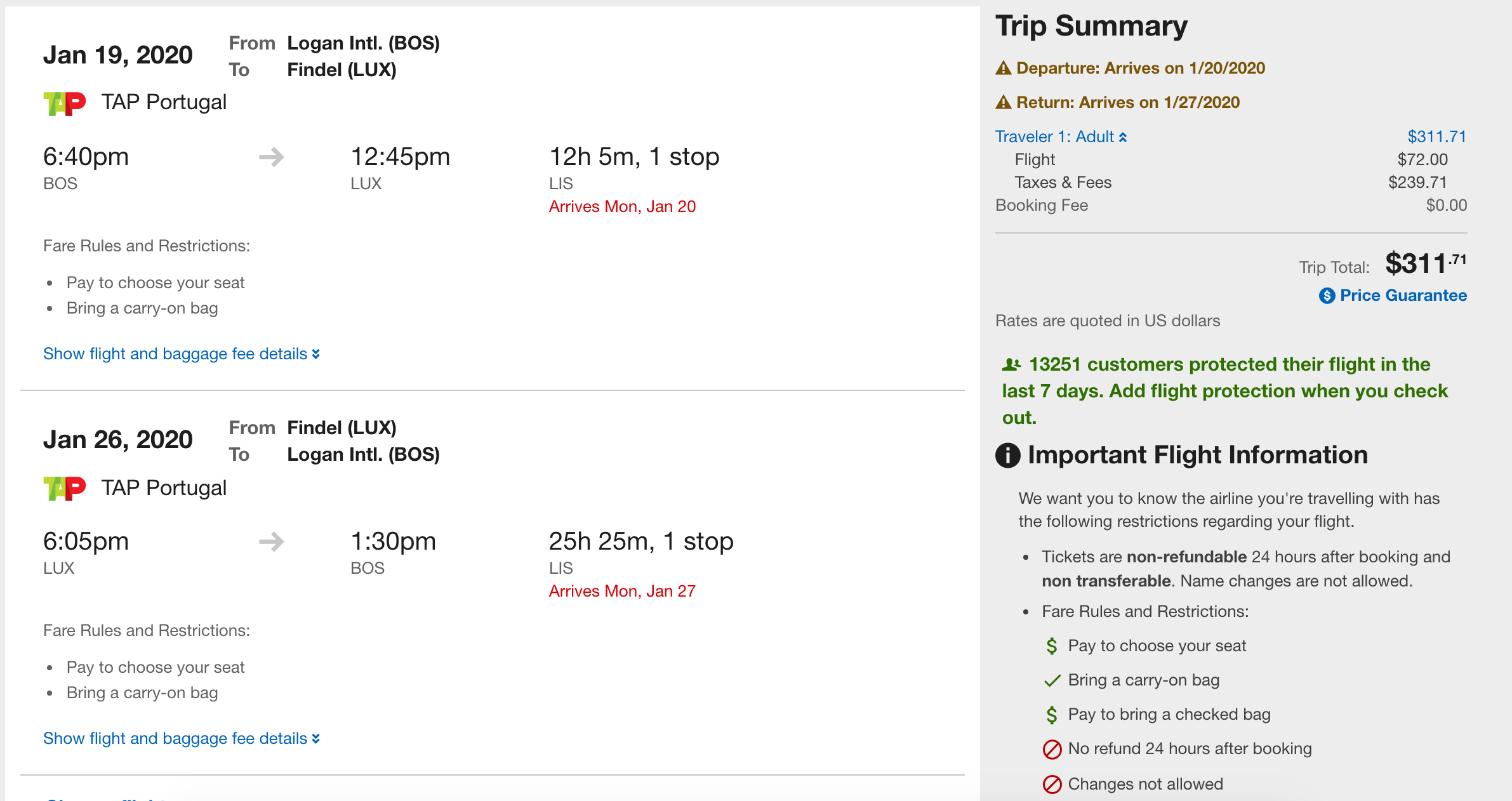 Boston (BOS) to Luxembourg (LUX) for $312 round-trip on TAP Portugal via Orbitz: