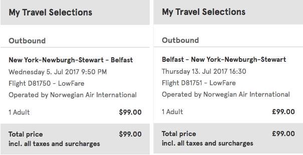 As is often the case with Norwegian Air, the best deals are found by booking outbound and return flights on separate itineraries. Use Google Flights to find the dates that work with you, and then complete booking directly through the carrier.