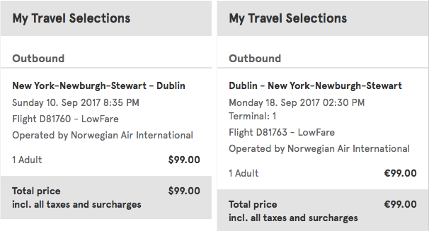 Newburgh, NY (SWF) to Dublin (DUB) for $210 round-trip in September: