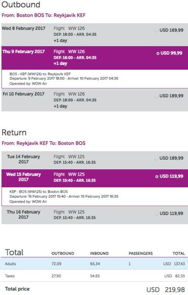 Boston (BOS) to Reykjavik (KEF) for $220 round-trip in February: