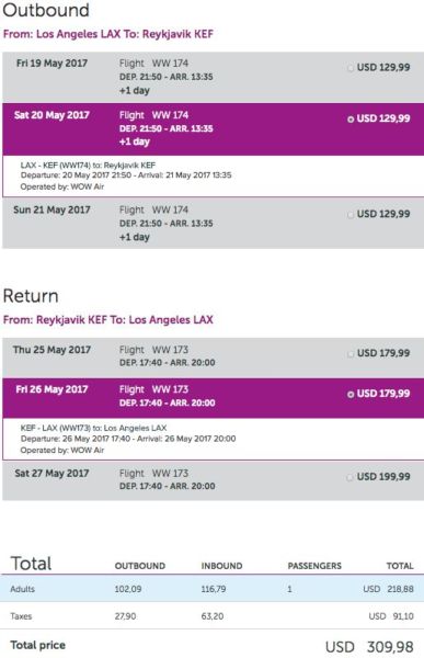 Los Angeles (LAX) to Reykjavik (KEF) for $310 round-trip in May: