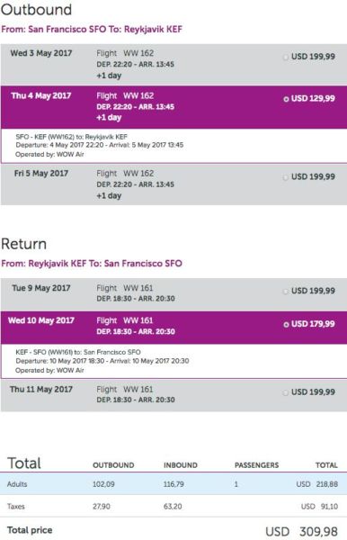 San Francisco (SFO) to Reykjavik (KEF) for $310 round-trip in May:
