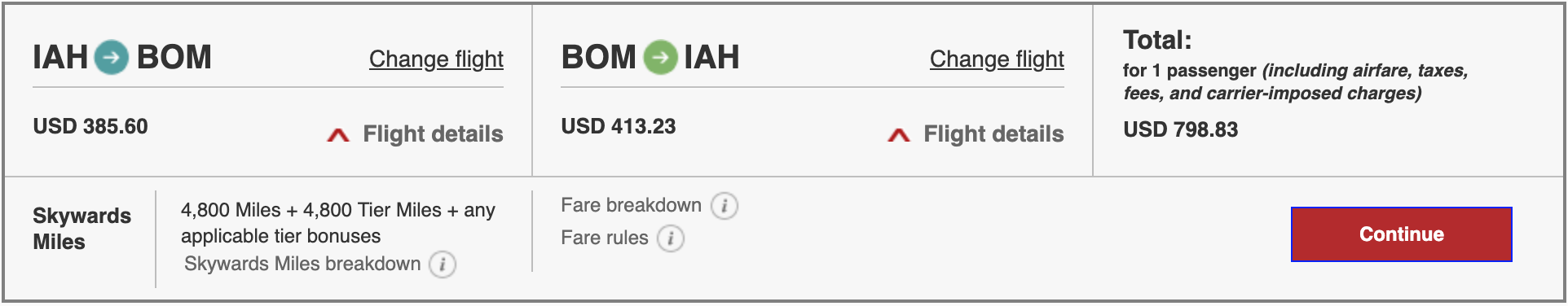 Houston (IAH) to Mumbai (BOM) for $799 round-trip on Emirates: