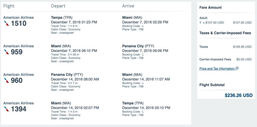 Tampa (TPA) to Panama City (PTY) for $236 round-trip in December: