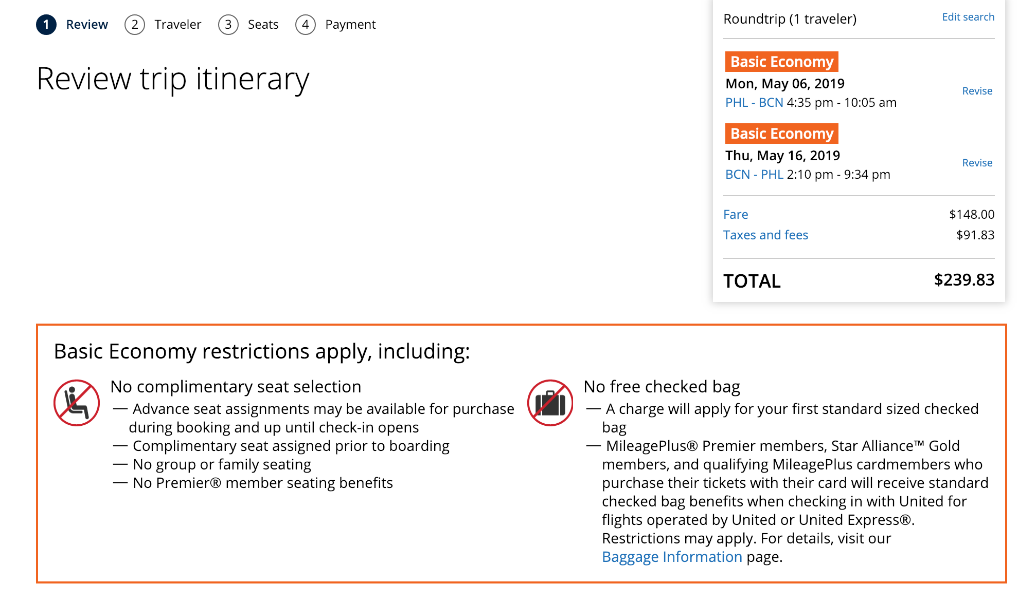 Philadelphia (PHL) to Barcelona (BCN) for $240 round-trip via United: