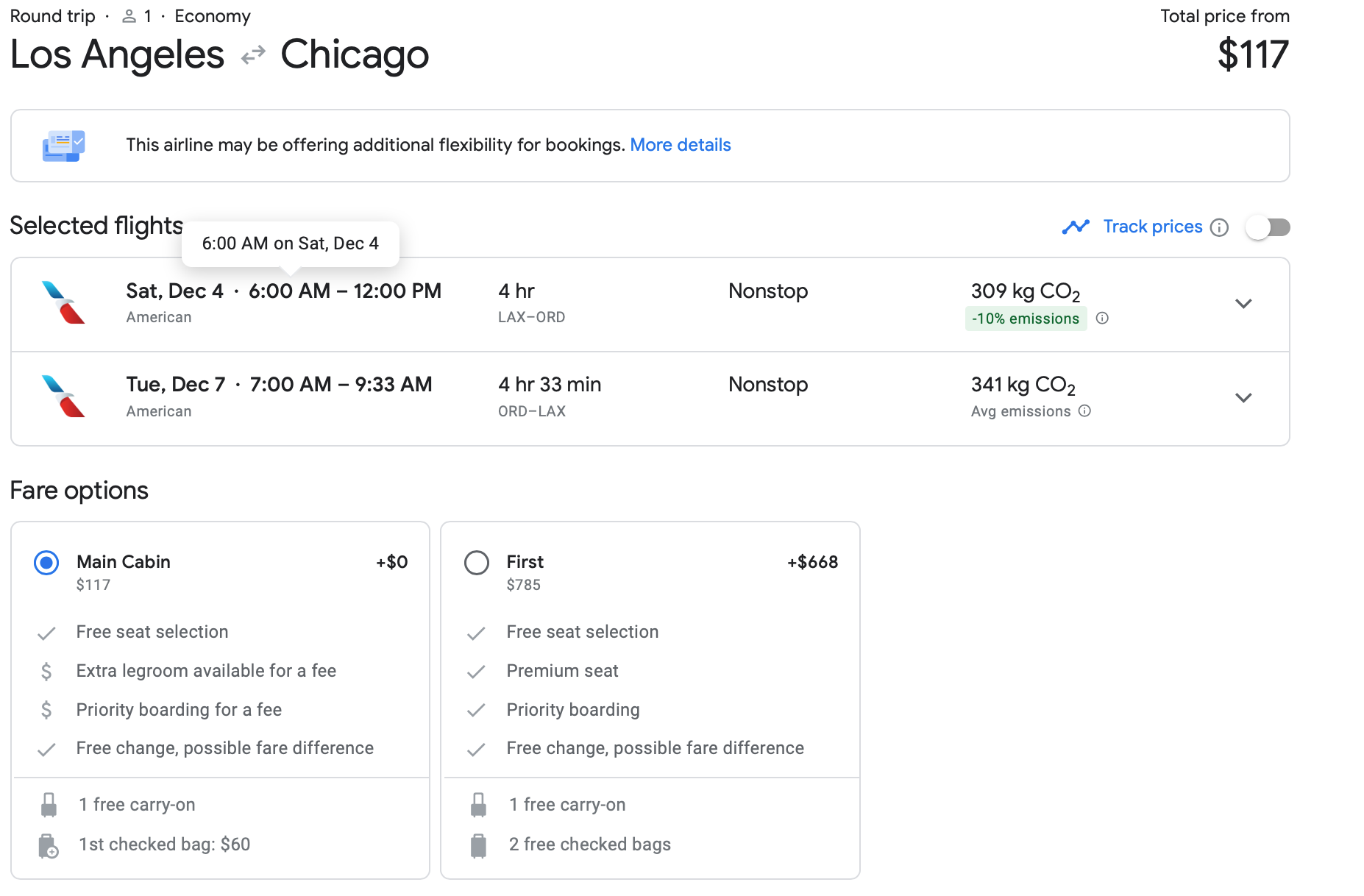 - Los Angeles (LAX) to Chicago (ORD) for as low as $117 nonstop