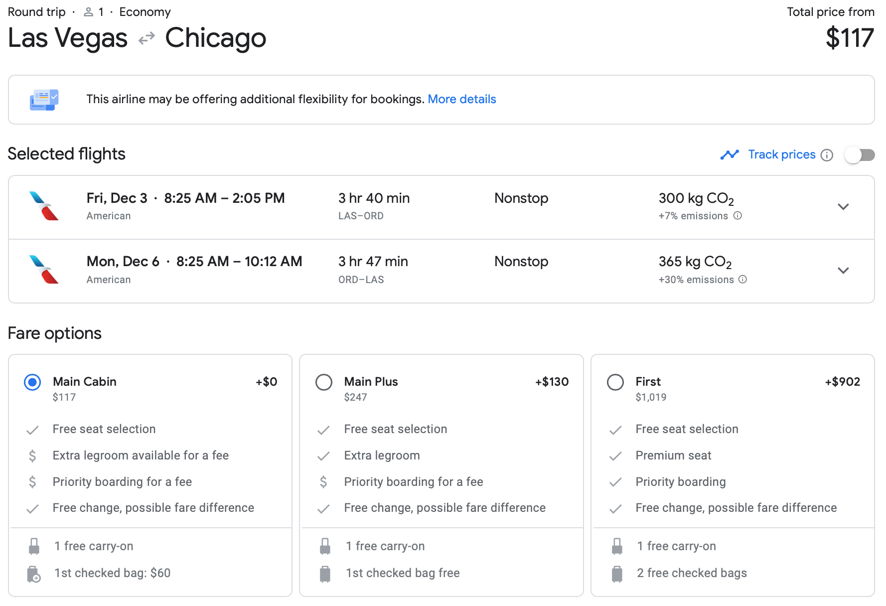 The fares offered by American and United are Main Cabin, which come with a free carry-on bag and seat assignment. The other flights in this offer are for Basic Economy seats. Many of the best prices we found were departure flights out of Florida, like this dirt-cheap price for a flight out of Fort Lauderdale (FLL) to Chicago for just $79 for a Main Cabin seat.