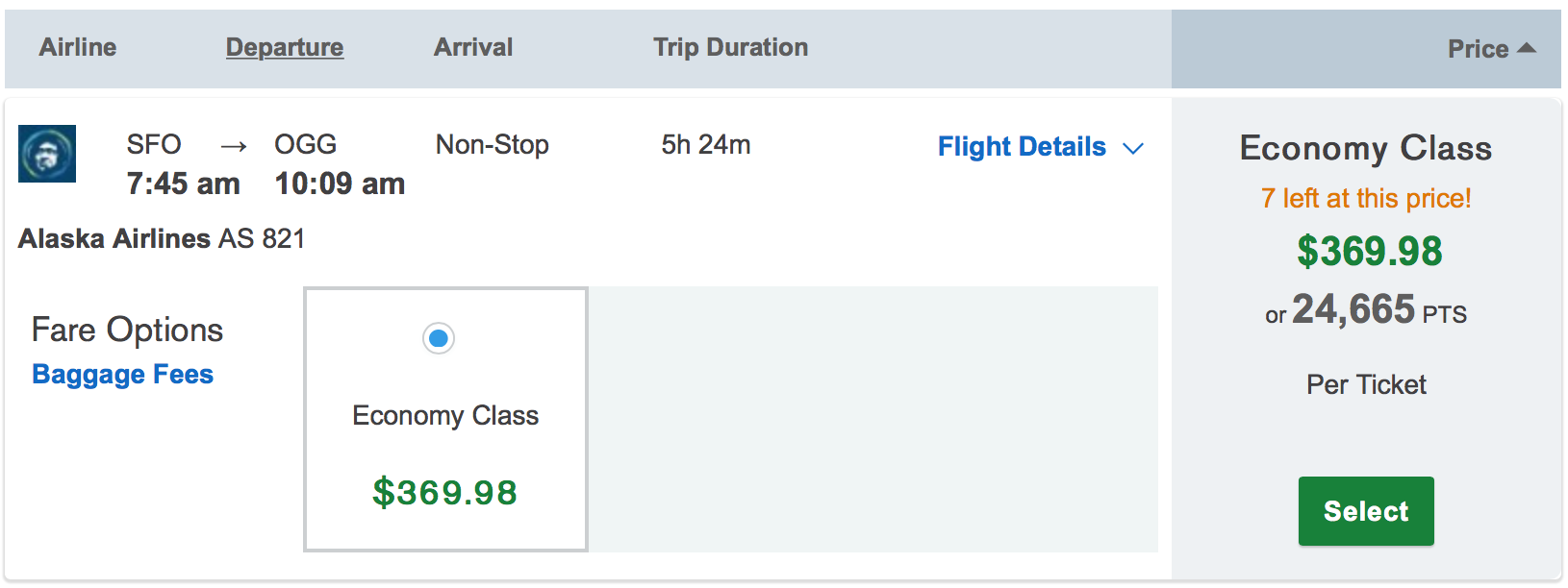 San Francisco (SFO) to Maui (OGG) for $370 round-trip or 24,665 UR points in November via Chase Ultimate Rewards portal: