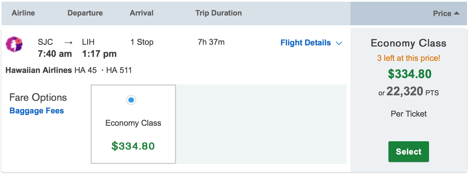 San Jose (SJC) to Lihue (LIH) for $335 round-trip or 22,320 UR points in November via Chase Ultimate Rewards portal:
