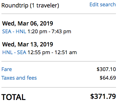 Seattle (SEA) to Honolulu (HNL) for $372 round-trip in March 2019 on United: