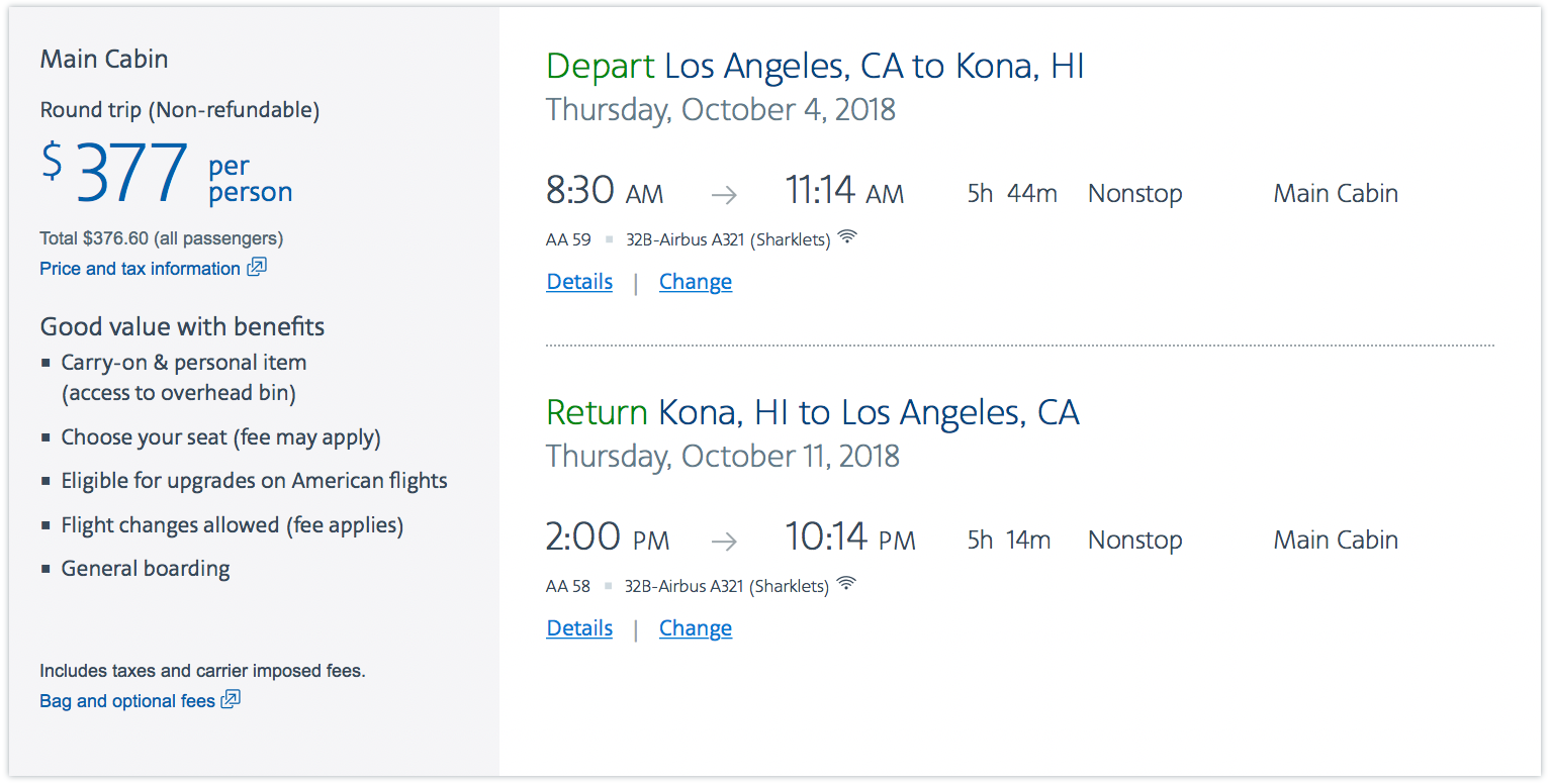 Los Angeles (LAX) to Kona (KOA) for $377 round-trip in October on American: