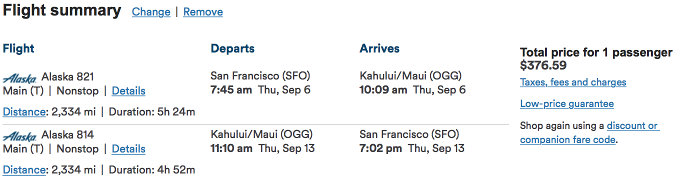 San Francisco (SFO) to Maui (OGG) for $377 round-trip in September on Airlines: