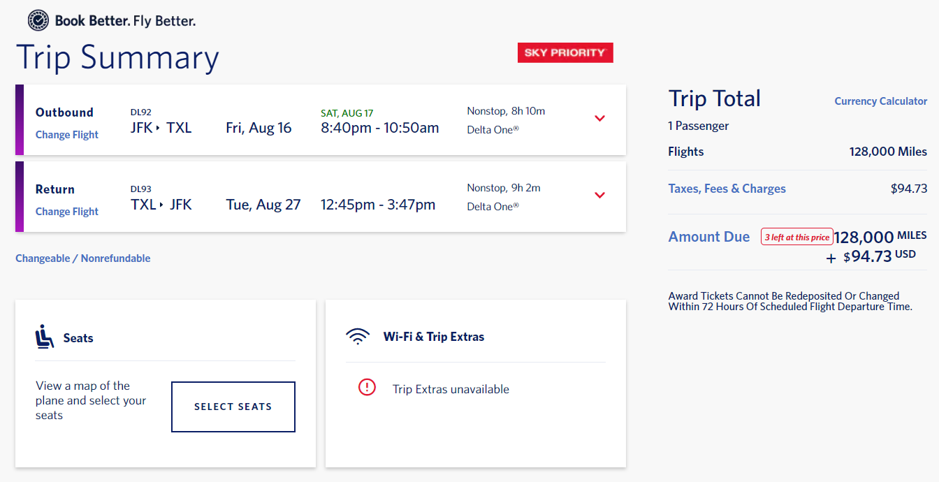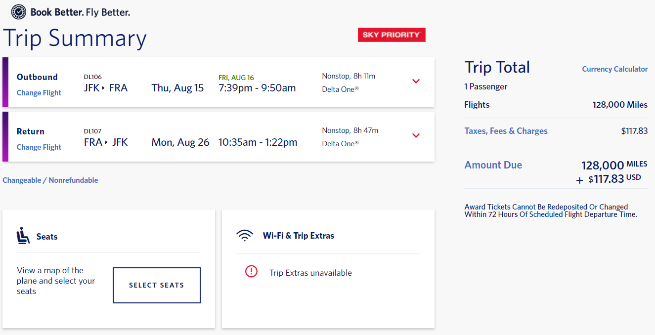 Remember that Diamond and Platinum Medallion members are entitled to fee-free cancellations on all award bookings (Basic Economy tickets notwithstanding), so top-tier elites can book now and see if it works with their schedule down the road. Also, Delta's higher elite tiers are entitled to complimentary upgrades from Main Cabin to Comfort+.