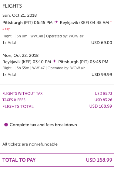 Pittsburgh (PIT) to Reykjavik (KEF) for $169 round-trip nonstop on WOW:
