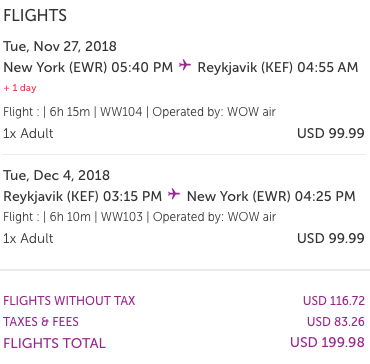 Newark (EWR) to Reykjavik (KEF) for $200 round-trip nonstop on WOW: