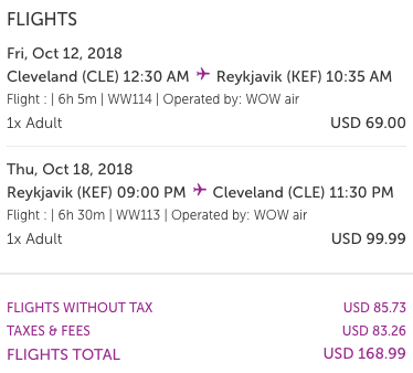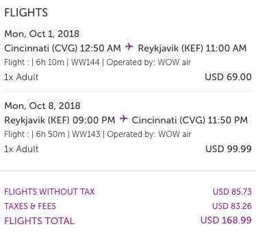 Cincinnati (CVG) to Reykjavik (KEF) for $169 round-trip nonstop on WOW: