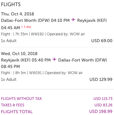 Dallas (DFW) to Reykjavik (KEF) for $199 round-trip nonstop on WOW: