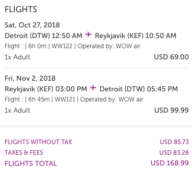 Detroit (DTW) to Reykjavik (KEF) for $169 round-trip nonstop on WOW:
