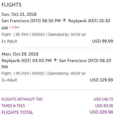 San Francisco (SFO) to Reykjavik (KEF) for $230 round-trip nonstop on WOW: