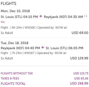 St. Louis (STL) to Reykjavik (KEF) for $199 round-trip nonstop on WOW: