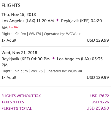 Los Angeles (LAX) to Reykjavik (KEF) for $260 round-trip nonstop on WOW: