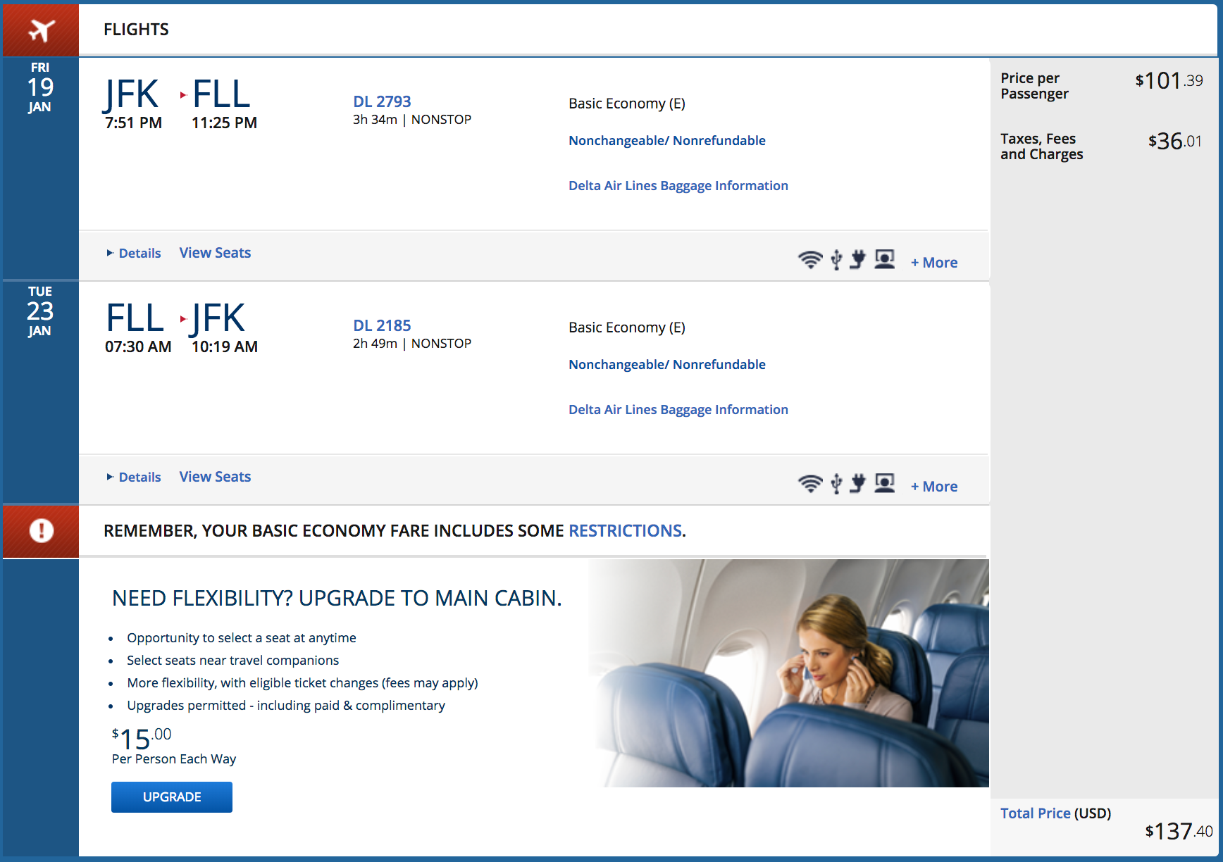 New York (JFK) to Fort Lauderdale (FLL) for $137 round-trip on Delta (basic economy):