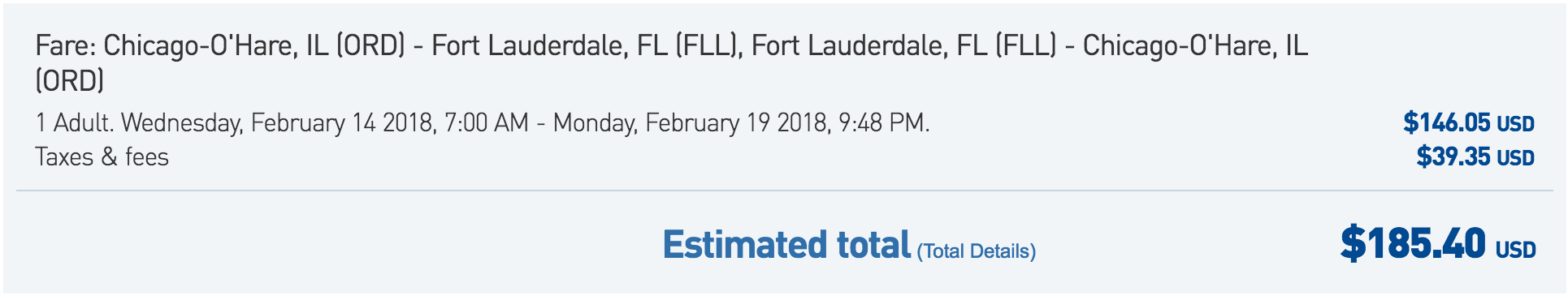 Chicago (ORD) to Fort Lauderdale (FLL) for $185 round-trip on JetBlue: