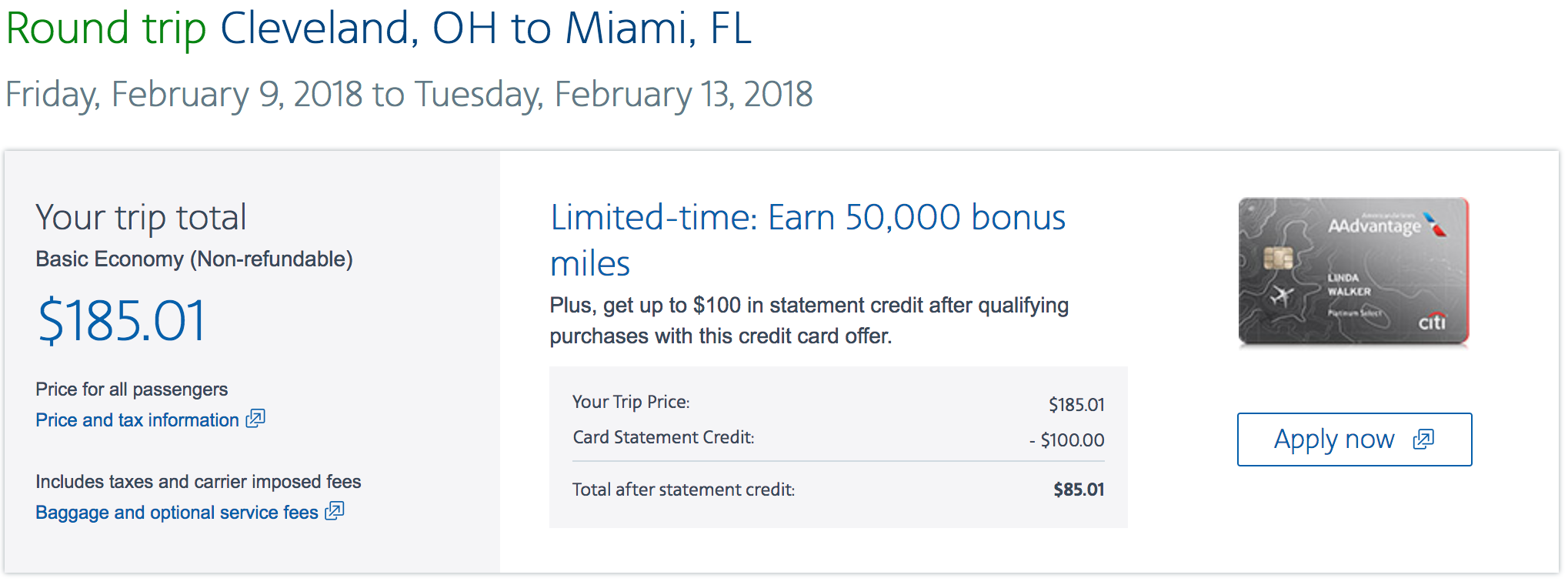 Cleveland (CLE) to Miami (MIA) for $185 round-trip on American (basic economy):